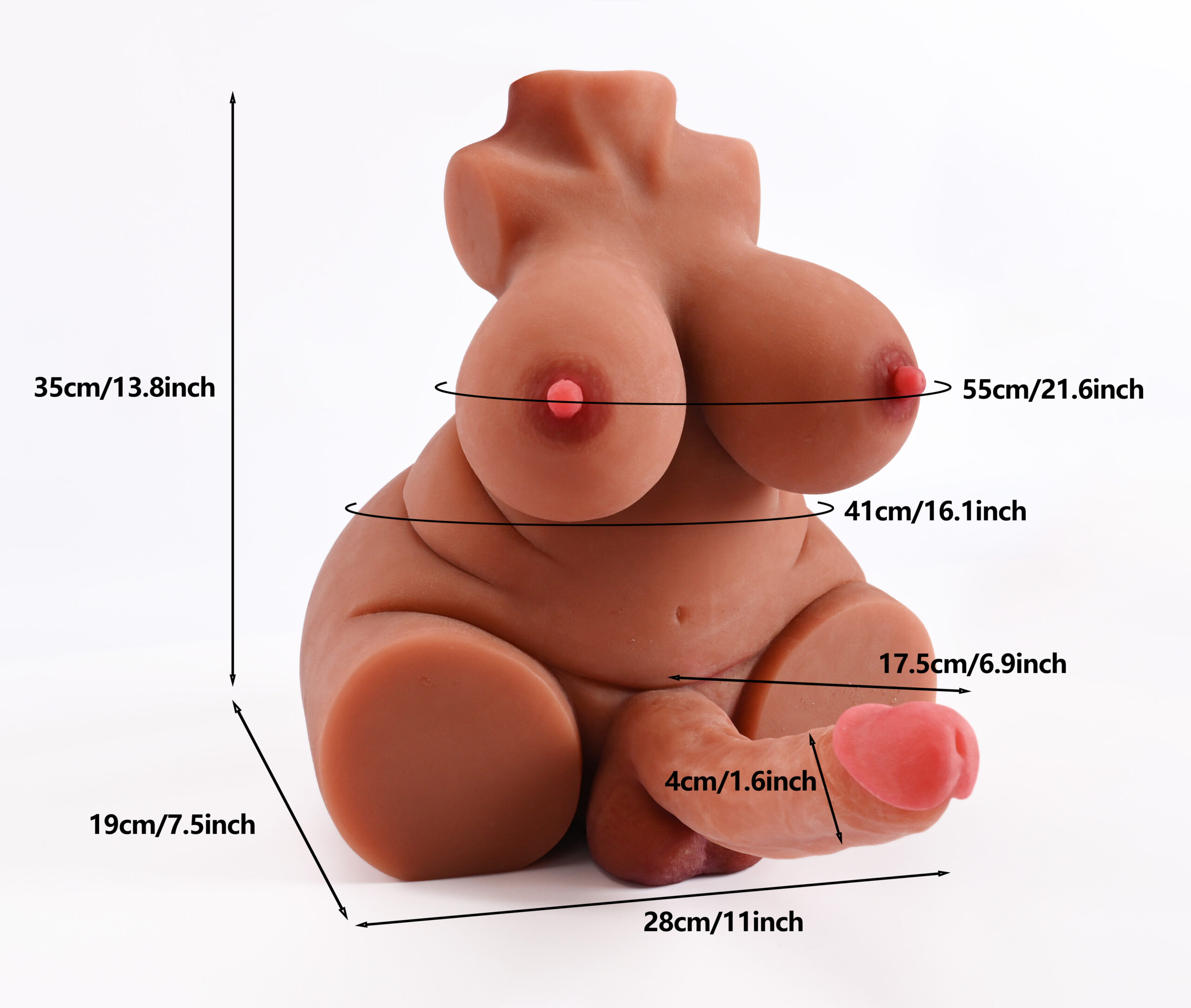 Çift Yönlü Haz: Ürün, 55 cm çevresine sahip dolgun göğüs yapısını, 17.5 cm uzunluğundaki gerçekçi bir dildo tasarımıyla birleştirir. Bu kombinasyon, farklı fantezi senaryoları için sınırsız imkan tanır.