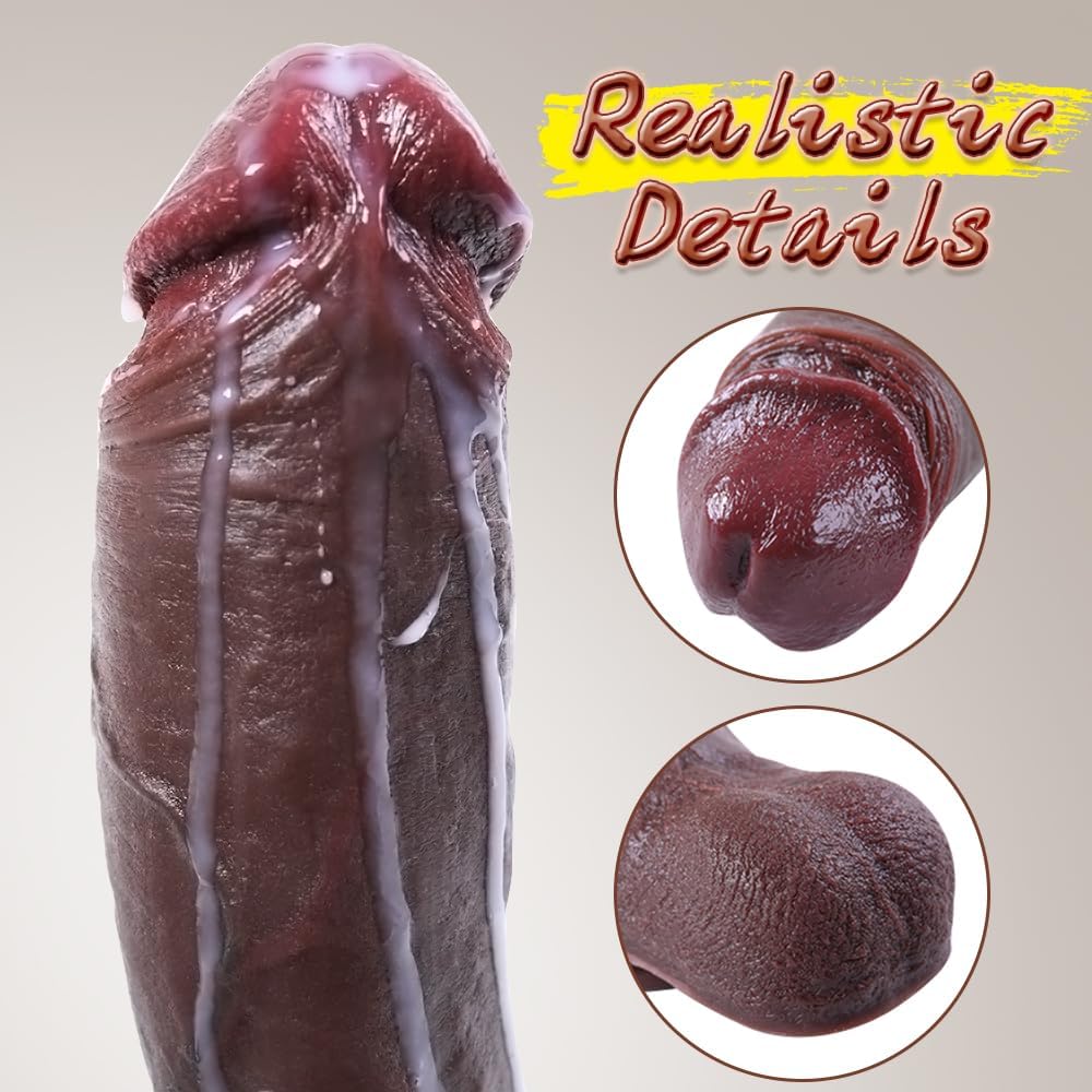 28 cm Güçlü Vantuzlu ve Doğal Dokulu Siyah Dildo