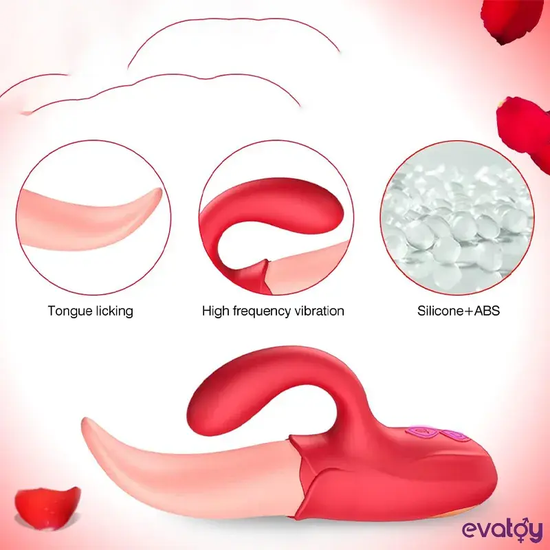 Klitoral ve Dil Yalama Vibratör, Bu ürün, C noktasını ve G noktasını aynı anda uyarabilen bir vibratör işlevine sahiptir. Bir vibratör ve yalama seks oyuncağıdır. önceki vibratörün donuk şeklini bir kenara bırakan ve yeni bir fizyolojik deneyim getiren insan dilinin tasarımı.